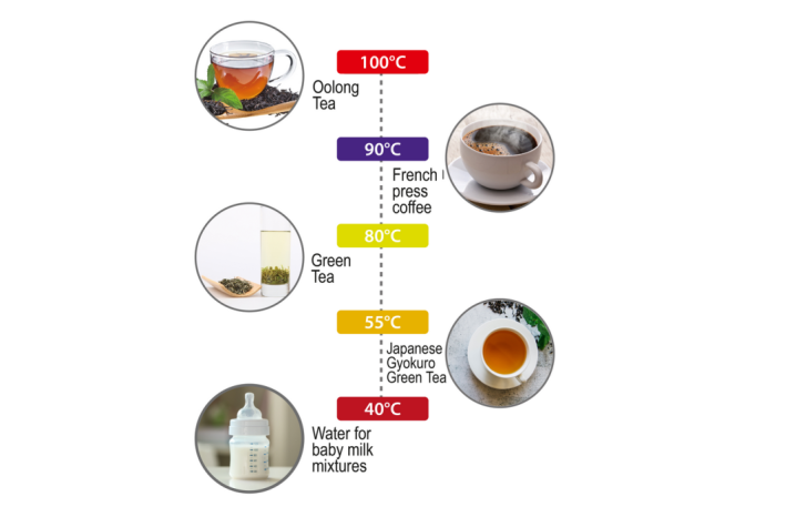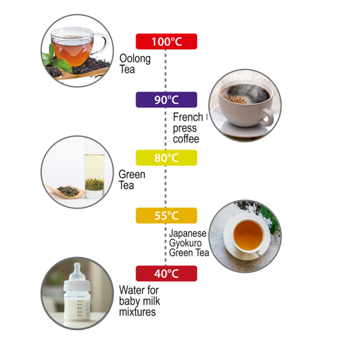 • Nastavljiva temperatura vrenja: 40°C / 55°C / 80°C / 90°C / 100°C