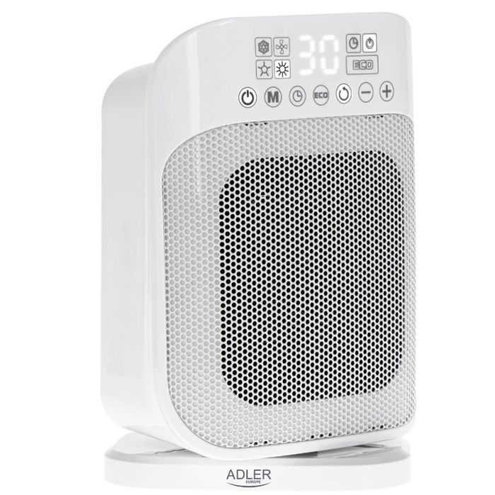 Keramični grelnik ADLER AD7727 ima največjo moč 1500 W. Keramični grelni element v napravi omogoča uravnavanje temperature od 10 do 35 °C. Poleg moči naprave, ki ima v naši opremi dve stopnji: 750 W in 1500 W, so pomembni tudi vsi dodatki, s katerimi delovanje grelnika lažje prilagodimo svojim potrebam. Eden od njih je časovnik, s katerim lahko odložimo vklop naprave od 1 do 24 ur. Zaradi ročaja za prenašanje, 45-stopinjskega nihanja in ogrevalne površine do 15 m² je idealen izdelek za vsako stanovanje in hišo. Naprava je opremljena z daljinskim upravljalnikom za udobno uporabo.