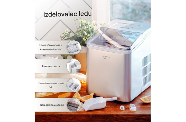 ✅ Visoka zmogljivost: Izdelava do 12 kg ledu na dan. Prva porcija 9 ledenih kock je pripravljena že v 9–13 minutah po vklopu naprave. Prihranek časa in denarja.