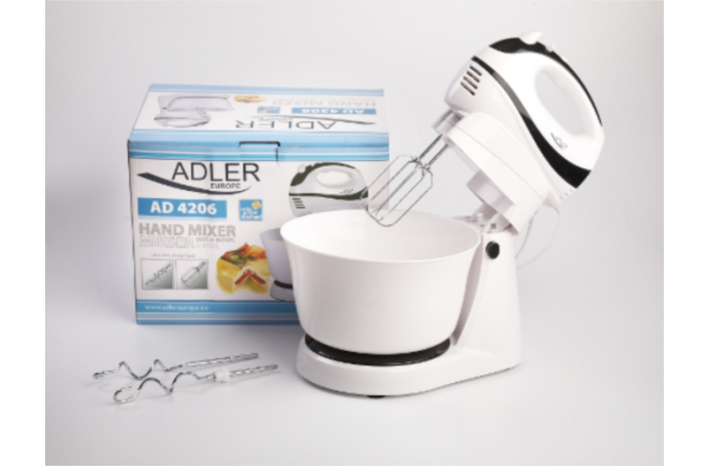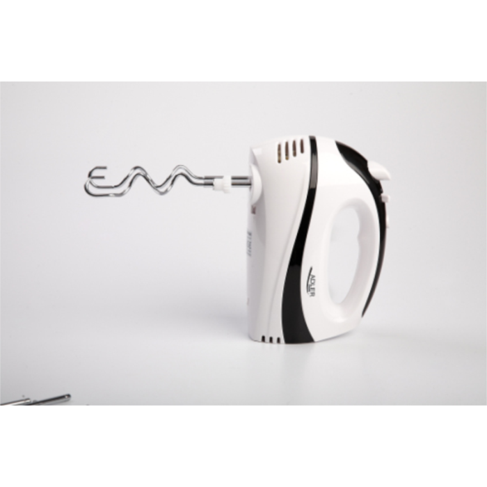 Zelo priročen mešalnik z močjo 300W je nepogrešljivo orodje za vse, ki radi pečejo razna peciva in piškote. Omogoča, da ga uporabljate na 5 različnih hitrostih, odvisno od tega, katero vrsto hrane pripravljate. Kadar je potrebno, lahko uporabite funkcijo TURBO. Mešalnik je praktičen in zanesljiv.
