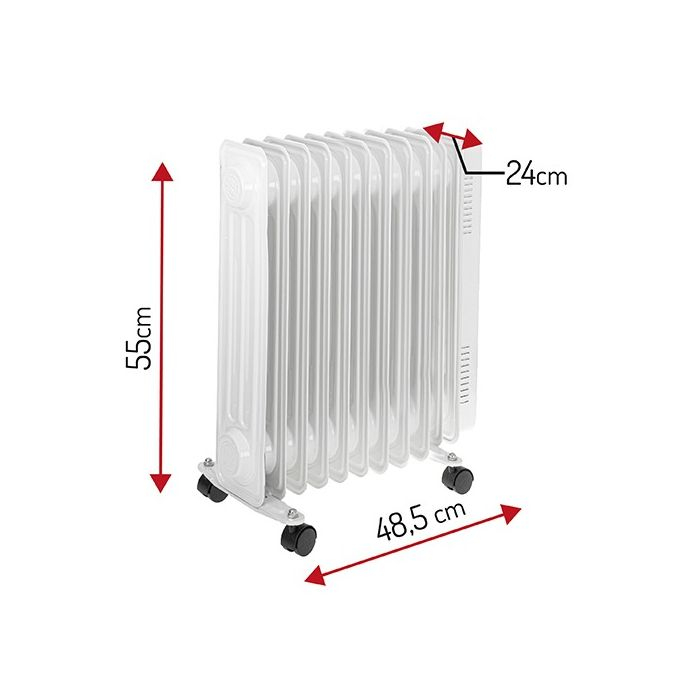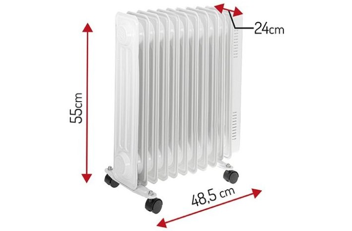 Za varno uporabo je naprava opremljena z zaščito pred pregrevanjem. Radiator je oblikovan v elegantni liniji, zato ga lahko brez težav postavite tudi v prostor, kjer sprejemate goste ali stranke. Ima 11 grelnih reber in moč 2500 W.