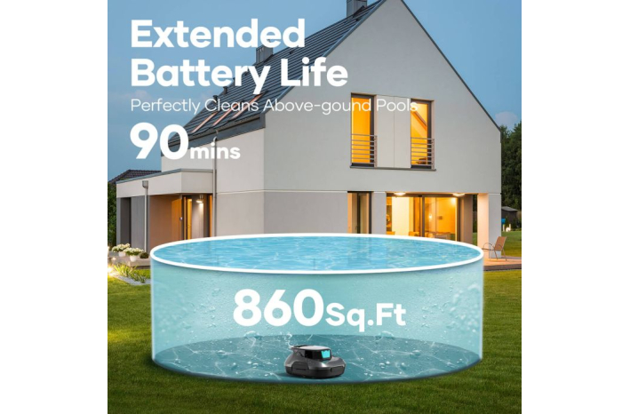 Ta majhen, a zmogljiv čistilec bazenov čisti do 90 minut in zagotavlja največjo pokritost tal vašega bazena.