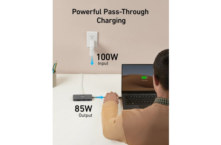 Podpira do 100 W (minus 15 W za delovanje) prehodno polnjenje, tako da lahko napolnite 15-palčni MacBook Pro s polno hitrostjo – vse to ob dostopu do drugih funkcij vozlišča. (Polnilnik ni priložen).