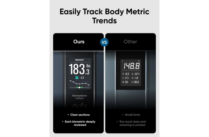 Brez težav spremljajte vnos in porabo kalorij z aplikacijo eufy Life, ki omogoča natančno upravljanje teže, kjer je vsaka kalorija upoštevana.
