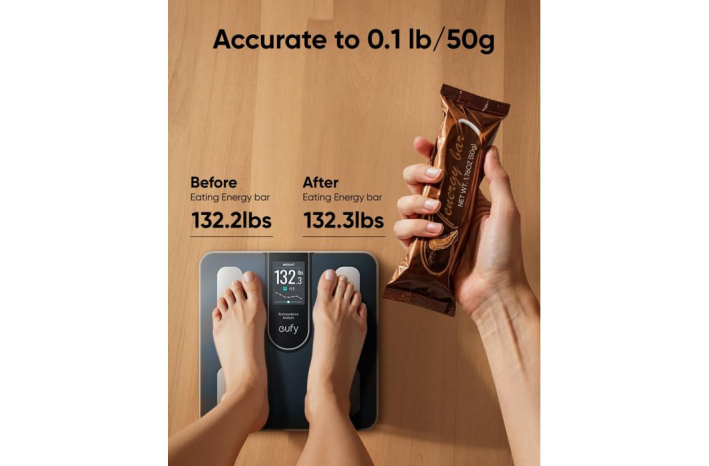 Pametna tehtnica eufy C20 se ponaša s štirimi visoko natančnimi senzorji in občutljivimi elektrodami, ki zagotavljajo merjenje teže z natančnostjo do 0,1 lb / 0,05 kg.