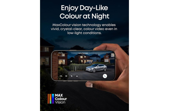 Kamera z ločljivostjo 2K in tehnologijo MaxColour Vision omogoča zajemanje živih, barvnih posnetkov tudi ponoči.