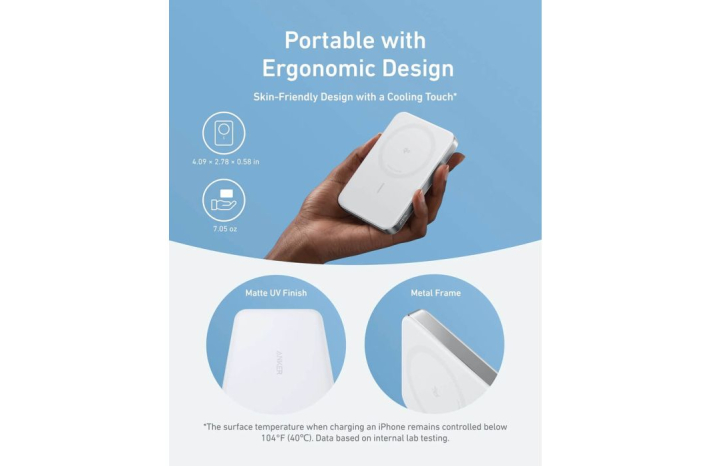 - Najtanjša moč doslej: Z debelino le 1.47 × 7.06 × 10.39 cm dosežite največjo prenosljivost in moč z našo doslej najtanjšo zasnovo. (Opomba: Na podlagi notranjih primerjav s prejšnjimi modeli Anker.)