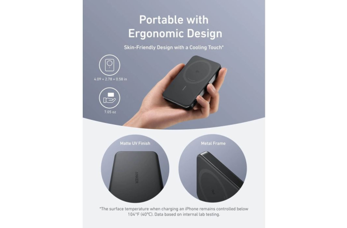 - Najtanjša moč doslej: Z debelino le 1.47 × 7.06 × 10.39 cm dosežite največjo prenosljivost in moč z našo doslej najtanjšo zasnovo. (Opomba: Na podlagi notranjih primerjav s prejšnjimi modeli Anker.)
