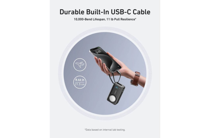 - Polnilni vhodi: 1×USB-C + vgrajeni USB-C kabel