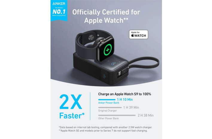 Maksimizirajte učinkovitost polnjenja z Apple certificiranim power bankom, ki lahko napolni Apple Watch Series 9 do 47 % v samo 30 minutah.