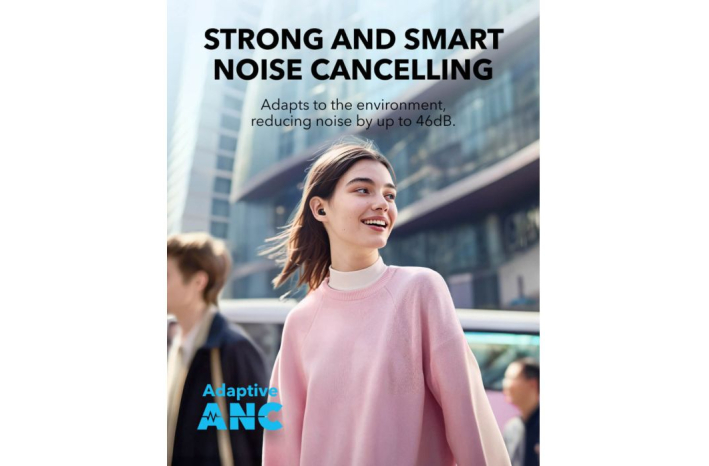 • Močno in pametno dušenje hrupa: soundcore A30i z dušenjem hrupa blokirajo hrup do 46 dB. Z uporabo prilagodljivih algoritmov A30i zazna zunanji zvok in se pametno samodejno prilagodi na ustrezno raven dušenja hrupa, ki je popolna za vas.