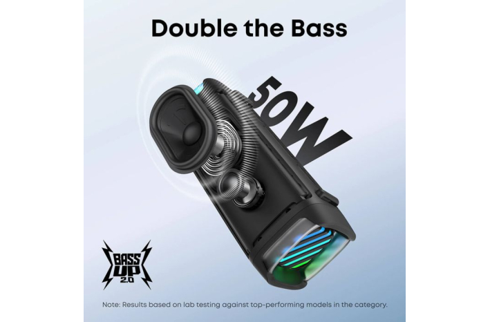 - Dvojni bas z BassUp™ 2.0: Ponuja 50 W zmogljivega zvoka z basi, ki segajo vse do 56 Hz. Tehnologiji BassUp™ 2.0 in DSP zagotavljata močne nizke ter jasne visoke tone. Resna zvočna zmogljivost v kompaktnem in prenosnem zvočniku.