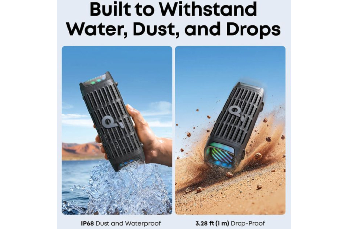 - IP68 vodoodporna in odporna na prah: Zasnovan za preživetje v vseh vremenskih razmerah – ta Bluetooth zvočnik je popolnoma vodoodporen in zaprt pred prahom. Popolna izbira za uporabo na prostem.