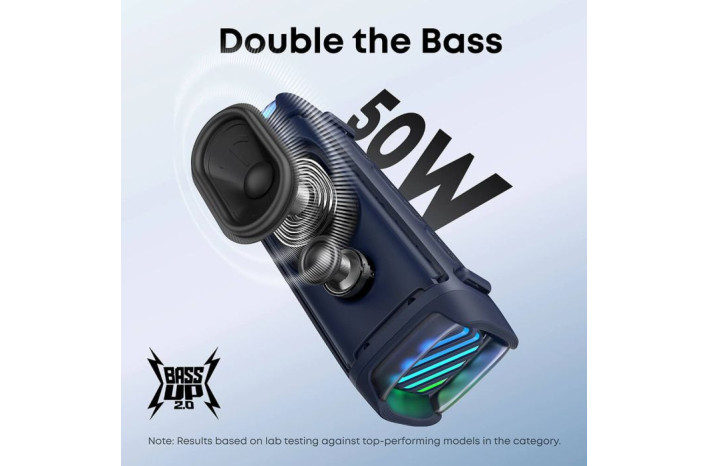 - Dvojni bas z BassUp™ 2.0: Ponuja 50 W zmogljivega zvoka z basi, ki segajo vse do 56 Hz. Tehnologiji BassUp™ 2.0 in DSP zagotavljata močne nizke ter jasne visoke tone. Resna zvočna zmogljivost v kompaktnem in prenosnem zvočniku.