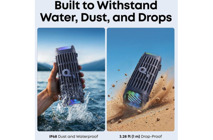 - IP68 vodoodporna in odporna na prah: Zasnovan za preživetje v vseh vremenskih razmerah – ta Bluetooth zvočnik je popolnoma vodoodporen in zaprt pred prahom. Popolna izbira za uporabo na prostem.