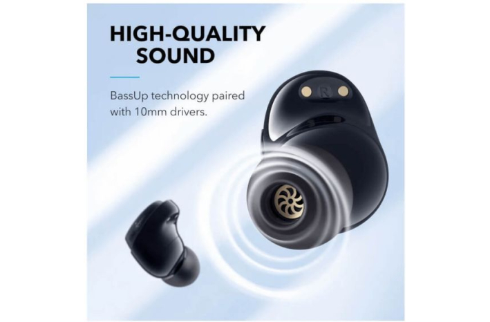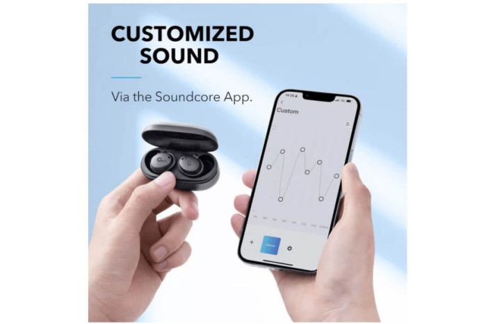 • Prilagojen zvok: z aplikacijo Soundcore lahko izbirate med do 22 prednastavljenimi izenačevalniki, prilagodite svojega ali uporabite Hear ID za umerjen izenačevalnik po meri