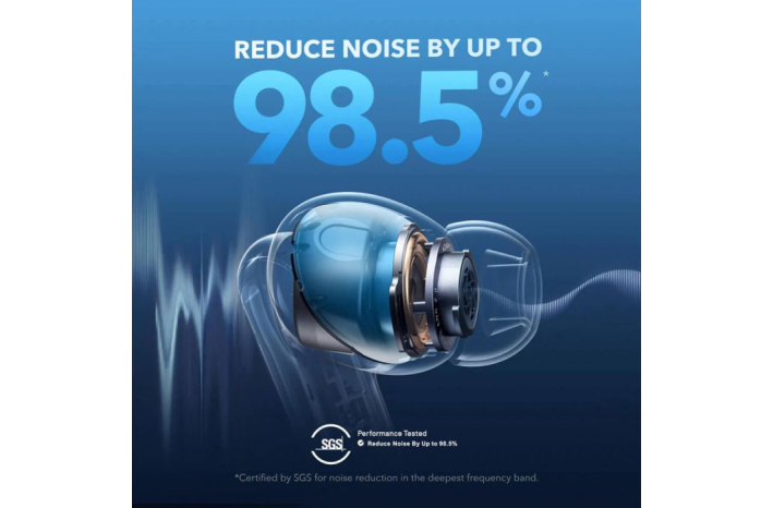 Visoko občutljiv ušesni zvočni senzor, 11 mm gonilnik in inovativna komora za izolacijo hrupa delujejo v tandemu, da zaznajo in izničijo do 98,5 % hrupa.