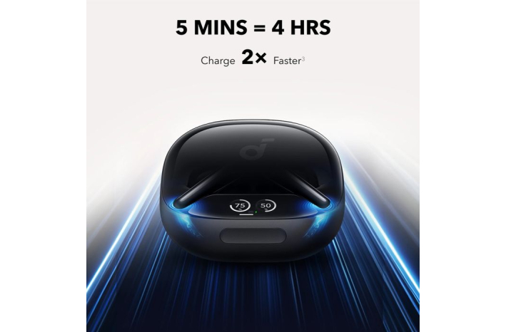 Prepolovite čas čakanja z našo 5C baterijo. S samo 5-minutnim polnjenjem pridobite 4 ure glasbene užitka, z do 40 urami miru, ki vas spremljajo na poti.