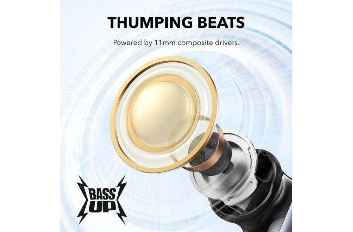 brezžične ušesne slušalke soundcore P40i imajo 11 mm kompozitne gonilnike za intenzivno zvočno doživetje, izboljšano s tehnologijo BassUp™ za intenzivne nizke tone v realnem času.