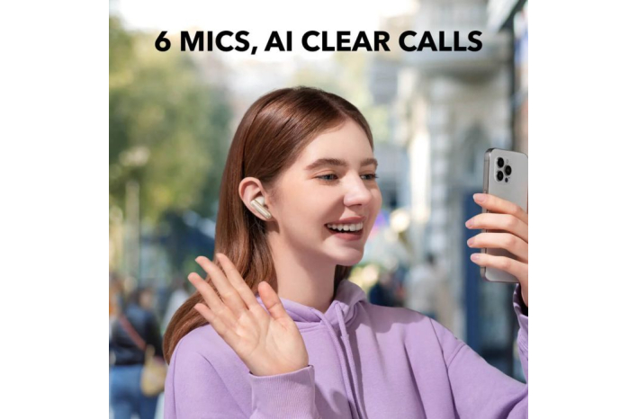 ušesne slušalke soundcore P40i z odpravljanjem šumov, izboljšane s 6 mikrofoni in algoritem umetne inteligence vam omogoča, da uživate v jasni komunikaciji, bodisi med klicem ali prek videoklepeta vaš glas se prenaša z jasnostjo in močjo.