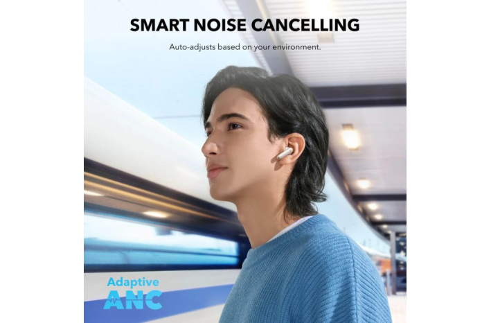 ušesne slušalke soundcore P40i z odpravljanjem hrupa imajo prilagodljiv ANC, ki samodejno zazna hrup iz okolice in uporablja napredne algoritme za doseganje učinkovitega odpravljanje hrupa, ki zagotavlja mir in tišino na poti.