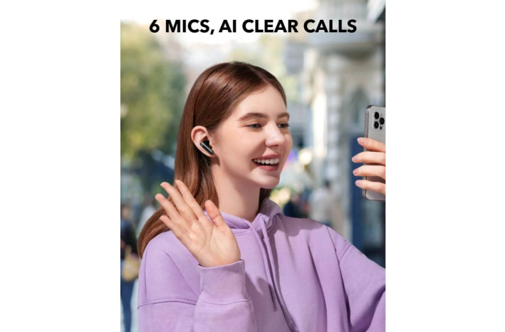 ušesne slušalke soundcore P40i z odpravljanjem šumov, izboljšane s 6 mikrofoni in algoritem umetne inteligence vam omogoča, da uživate v jasni komunikaciji, bodisi med klicem ali prek videoklepeta vaš glas se prenaša z jasnostjo in močjo.