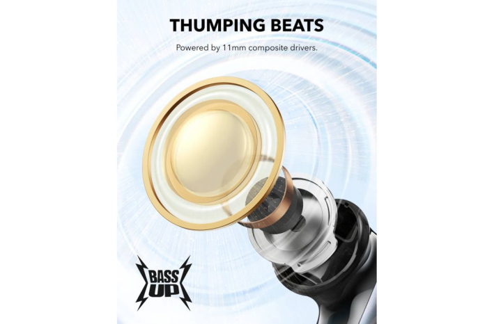 brezžične ušesne slušalke soundcore P40i imajo 11 mm kompozitne gonilnike za intenzivno zvočno doživetje, izboljšano s tehnologijo BassUp™ za intenzivne nizke tone v realnem času.