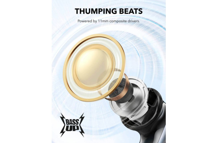 brezžične ušesne slušalke soundcore P40i imajo 11 mm kompozitne gonilnike za intenzivno zvočno doživetje, izboljšano s tehnologijo BassUp™ za intenzivne nizke tone v realnem času.