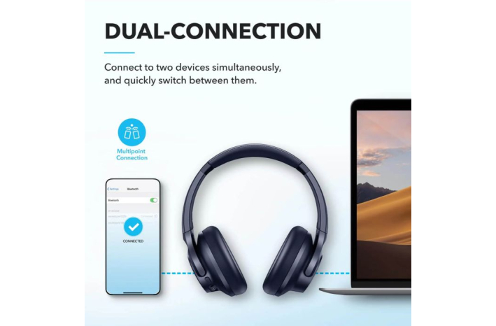 Povežite se z dvema napravama hkrati z Bluetooth 5.0 in takoj preklapljajte med njima. Ne glede na to, ali delate na prenosniku ali morate sprejeti telefonski klic, se bo zvok samodejno predvajal iz naprave, s katero se želite slišati.
