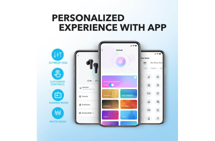 • 22 prednastavljenih izenačevalnikov: izberite, kako želite poslušati svojo glasbo v aplikaciji soundcore