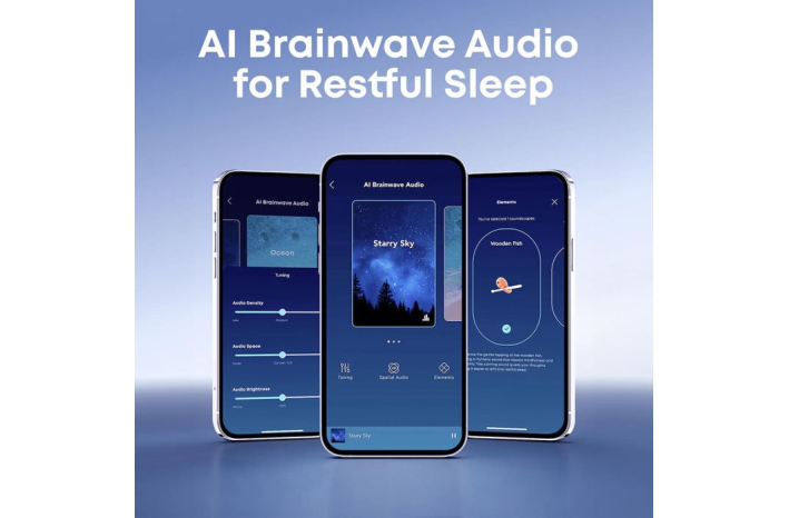 AI možganski valovi za hitrejši spanec: Binauralni toni v vsako uho predvajajo različne frekvence, kar pomaga uskladiti možganske valove z umirjajočimi vzorci za sprostitev in boljši spanec.