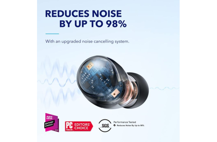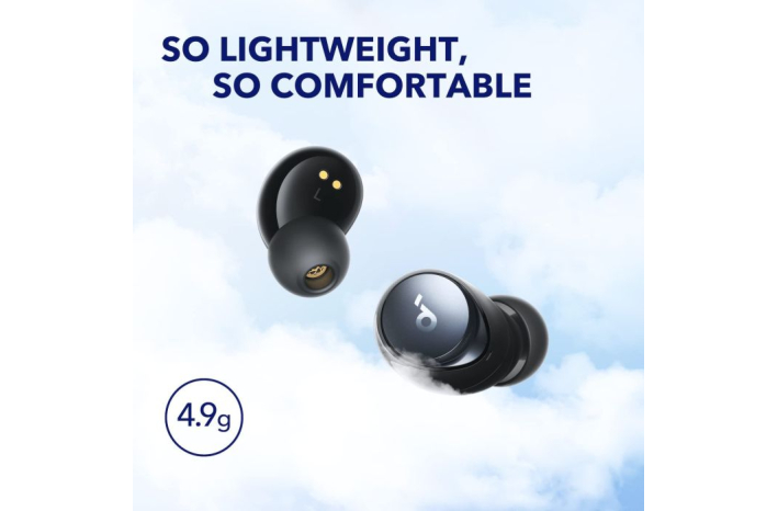 Space A40 so zasnovane z mislijo na udobje in praktičnost ter so manjše od vseh drugih ušesnih čepkov Soundcore ANC. Imajo lahko in ergonomsko obliko, tako da jih lahko nosite dlje časa, ne da bi pri tem utrudili ušesa.