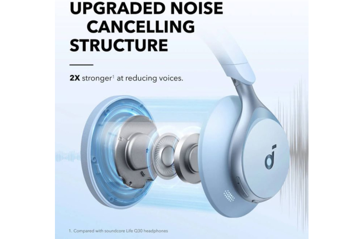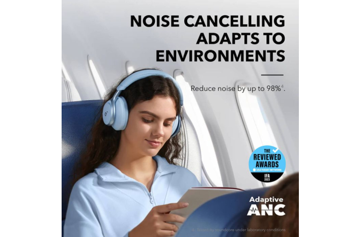 da bi zagotovili popolno koncentracijo na prometnih cestah, imamo zdaj popolne brezžične slušalke za vas: Space One zaznamuje zatiranje srednje in visokofrekvenčnih tonov z dvakratno visoko* izničitvijo glasu. *V primerjavi s slušalkami Soundcore Q30. - Odpravljanje hrupa do 98 %*: