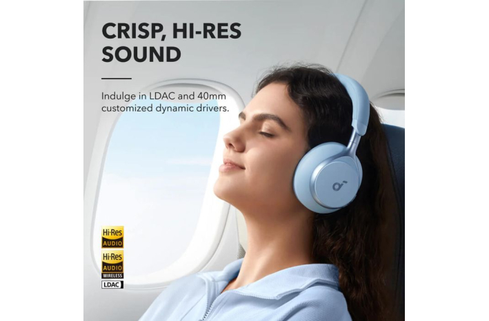 prilagojeni 40 mm dinamični zvočni gonilniki Space One podpirajo LDAC za brezžični zvok visoke ločljivosti in zagotavljajo trikrat večjo natančnost v primerjavi s standardnimi kodeki Bluetooth za podrobno poslušanje – brez prepletenih kablov. - 40 ur predvajanja ANC: