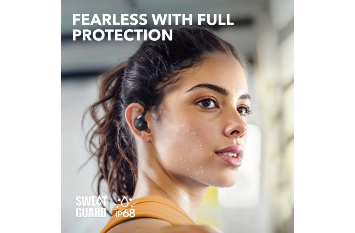 - Zasnova, odporna na vse: Edinstvena oblika votline športnih ušesnih čepkov in ekskluzivna tehnologija SweatGuard za zvočno jedro ustvarjata tesnilo, ki ga navdihuje podmornica, ki ščiti notranje komponente pred poškodbami zaradi vode, znoja in prahu. Gibajte se brez strahu.