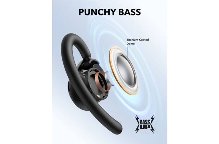 - Močan bas s 16-milimetrskimi zvočniki: potopite se v bogate, resonančne nizke tone, ki jih spodbujajo napredni 16-milimetrski zvočniki V20i s kupolami, prevlečenimi s titanom, in lastniško tehnologijo Soundcore BassUp.