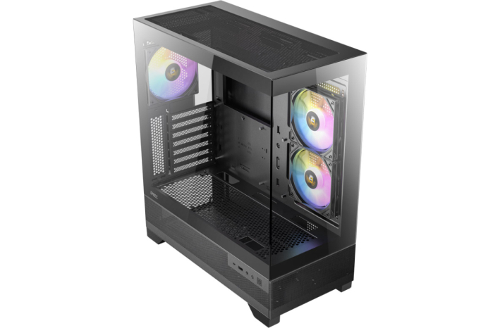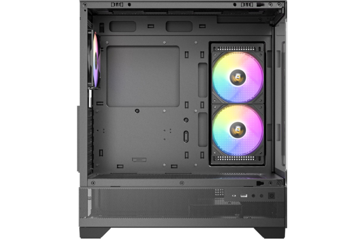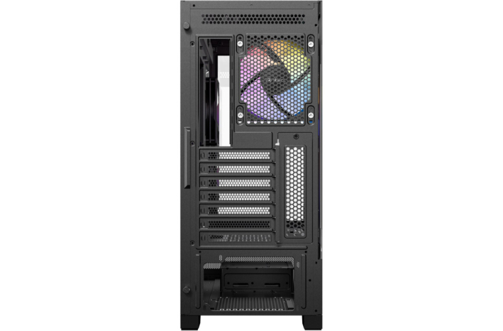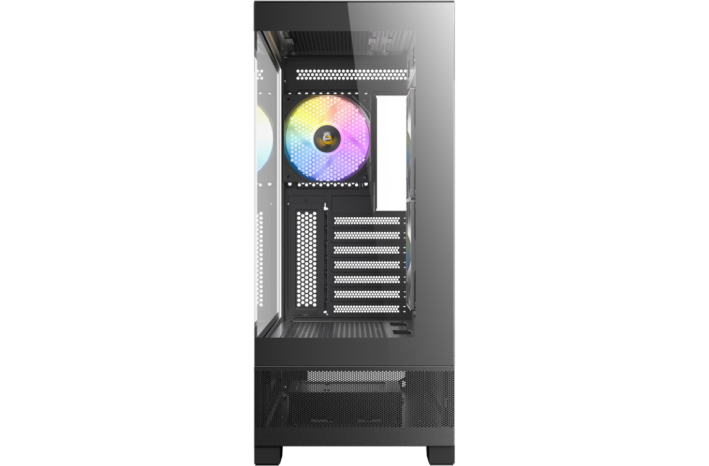 Vgrajena sta dva 120 mm ARGB ventilatorja na stranici in en na zadnji strani. Skupno lahko vgradite do 9 ventilatorjev. LED osvetlitev lahko upravljate z gumbom na stranici.