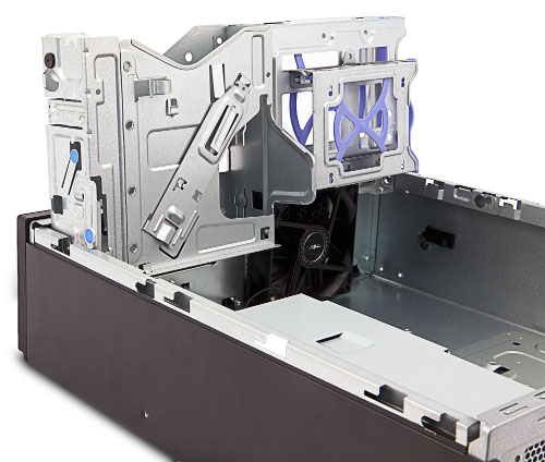 Enostavno odpiranje stranice z gumbom ter hitra vgradnja optične enote in diskov brez orodja zagotavljata hitro in brezskrbno uporabo. Vgrajen ventilator s temperaturnim nadzorom poskrbi za optimalno hlajenje komponent.
