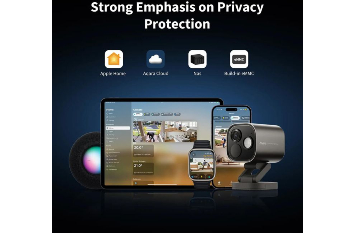 Kamera podpira HomeKit Secure Video, ima šifrirano vgrajeno eMMC shrambo, prvič pa omogoča tudi šifriranje "od konca do konca" za posnetke, poslano tako v Apple kot Aqara oblak – nova raven varnosti podatkov.