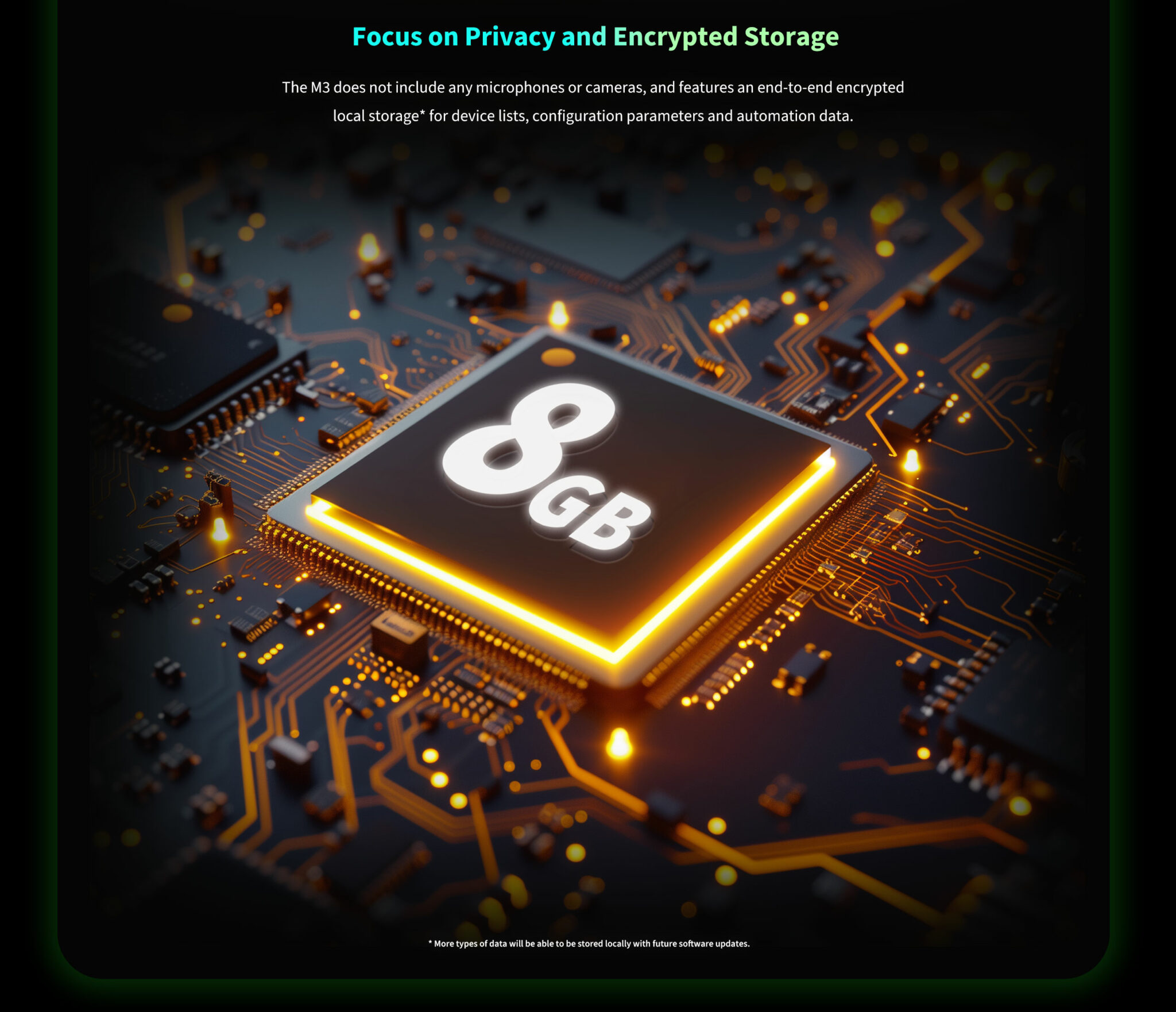 Hub M3 izboljša vašo zasebnost s shranjevanjem podatkov neposredno v vašo napravo, ne da bi jih pošiljal v oblak, kar zagotavlja zaščito vaših osebnih podatkov.