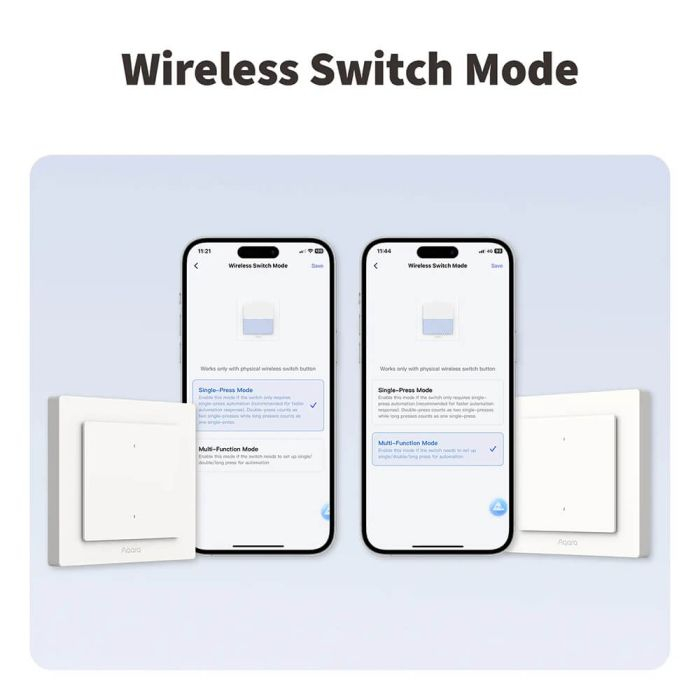 Način brezžičnega stikala ponuja večjo prilagodljivost za avtomatizacijo spodnjih gumbov, kar uporabnikom omogoča izbiro med dvema možnostma.