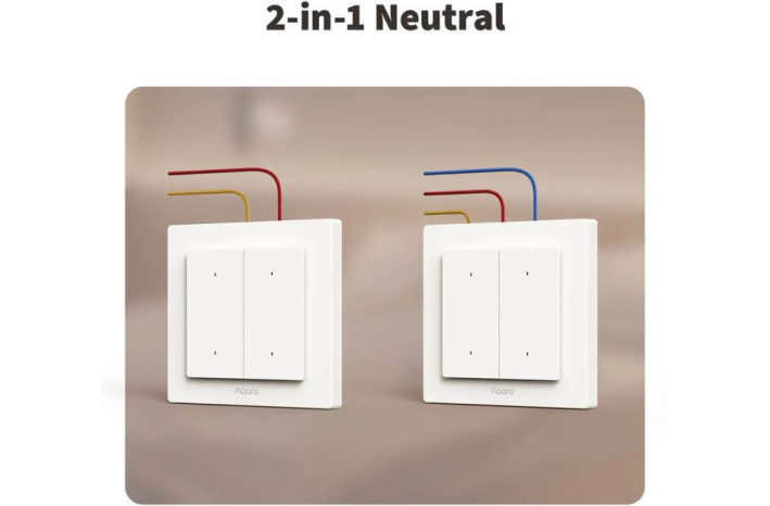 Stikalo Aqara Light Switch H2 EU podpira tako nevtralno kot breznevtralno ožičenje za enostavno namestitev.