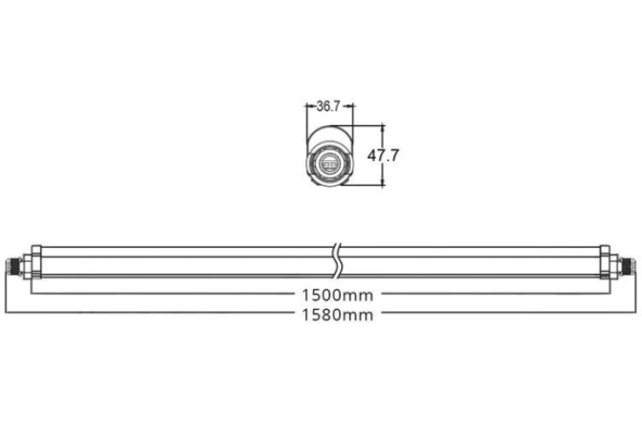 Vgrajena Triproof svetilka ima priključno mesto z vpenjalno žlebo na obeh koncih,