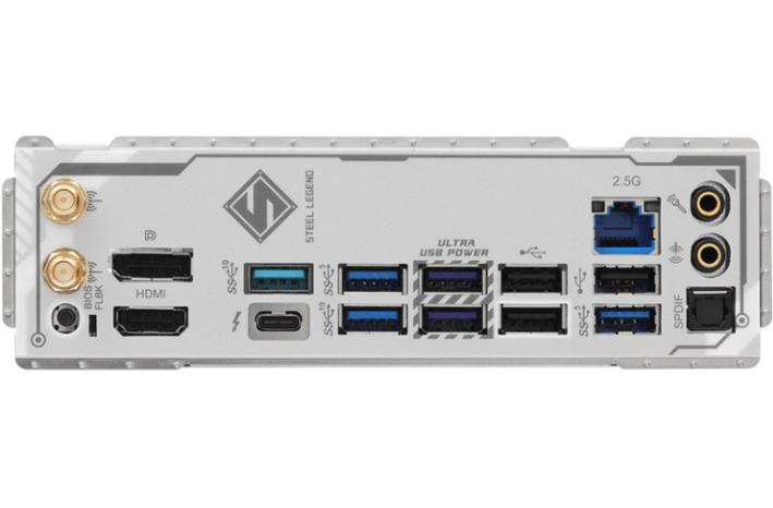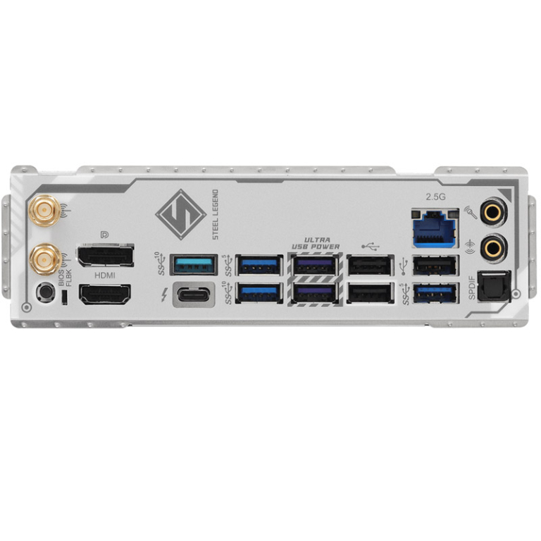 | Zunanji konektorji: | 2x Antena 1x HDMI 1x DisplayPort 1.4 1x Optical SPDIF izhod 1x Thunderbolt 4 Type-C (40 Gb/s za USB4 protocol; 40Gb/s za Thunderbolt protocol) 2x USB 3.2 Gen2 Type-A (10 Gb/s) 4x USB 3.2 Gen1 3x USB 2.0 1x RJ-45 LAN 1x BIOS Flashback 1x Line Out Jack (Gold Audio Jack) 1x mikrofon vhod Jack (Gold Audio Jack) |