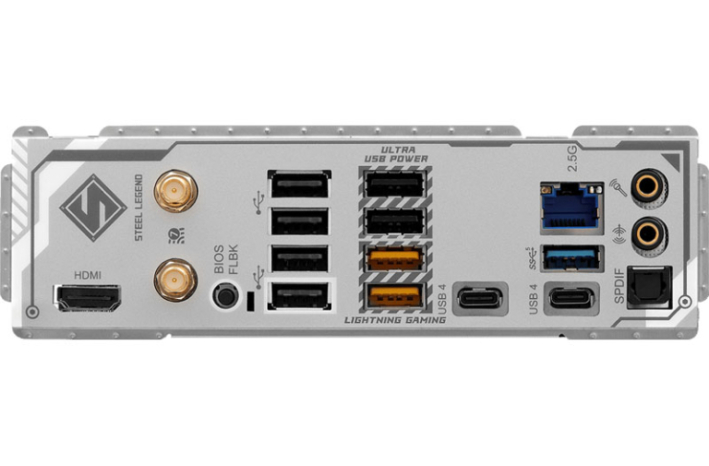 | Zunanji konektorji: | 2x Antenna 1x HDMI 1x Optical SPDIF Out 2x USB4 Type-C (40 Gb/s, USB PD 3.0 do 5V @ 3A (15W)) 3x USB 3.2 Gen1 Type-A 2x USB 3.2 Gen2 Type-A (10 Gb/s) 4x USB 2.0 1x RJ-45 LAN 1x BIOS Flashback gumb 1x Line Out Jack (Gold Audio Jack) 1x Mikrofon (Gold Audio Jack) |