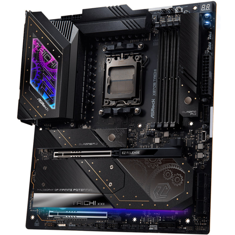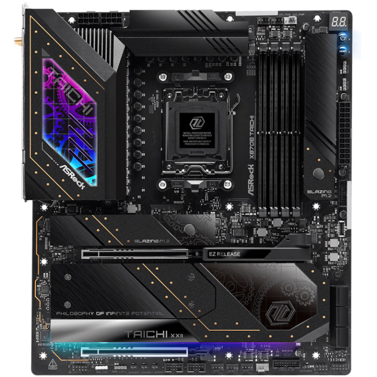 ASRock X870E Taichi je paradna matična plošča serije Taichi, ki združuje vrhunske strojne specifikacije, robustno zasnovo napajanja, USB4 Type-C in funkcionalnosti, ki olajšajo sestavo računalnika. Namenjena je predvsem zahtevnim uporabnikom in igralcem, saj ponuja prestižno estetiko ter izjemno zmogljivost.