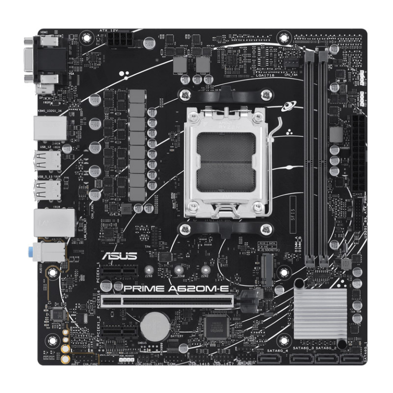 ASUS Prime A620M-E-CSM AM5 mATX DDR5 osnovna plošča je pripravljena za napredni računalnik z umetno inteligenco ter zagotavlja izjemno hitro povezljivost in obsežno hlajenje.