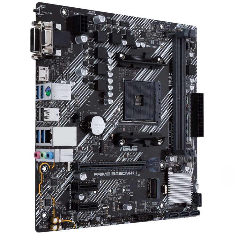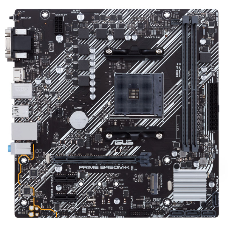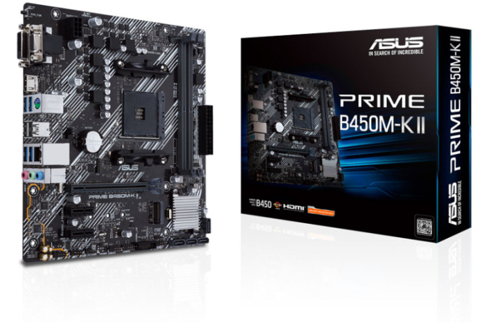 ASUS Prime B450M-K II AM4 mATX osnovna plošča je strokovno zasnovana tako, da sprosti celoten potencial procesorjev AMD Ryzen. Matične plošče Prime B450, z novo zasnovo moči, ponujajo številne zmožnosti uravnavanja zmogljivosti s pomočjo inuitivne programske opreme in funkcij vdelane programske opreme.