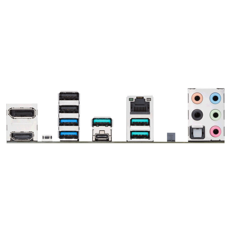 | Zunanji konektorji: | 4x USB 3.2 Gen 2 Type-A 1x USB 3.2 Gen 2 Type-C 2x USB 3.2 Gen 1 Type-A 2x USB 2.0 Type-A 1x DisplayPort 1x HDMI 1x Vertical M.2 slot (Key E) 1x Realtek 2.5Gb Ethernet port 5x Audio jacks 1x Optical S/PDIF out 1x BIOS FlashBack gumb |