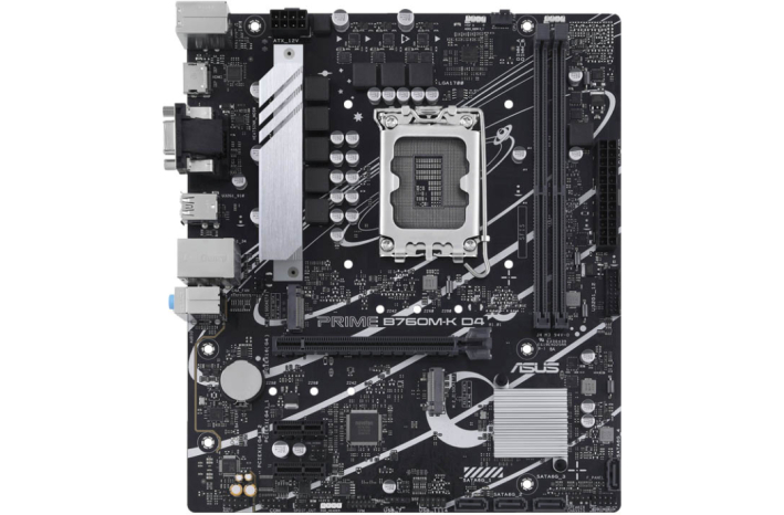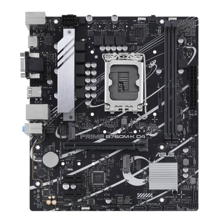 ASUS Prime B760M-K D4 LGA1700 DDR4 MicroATX osnovna plošča je izjemna osnovna plošča, ki zagotavlja hitro povezljivost, obsežno hlajenje in osvetlitev Aura Sync RGB. Pripravljena je za procesorje Intel 13. in 12. generacije.